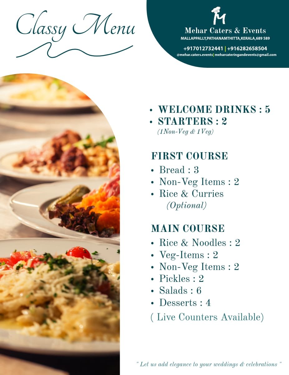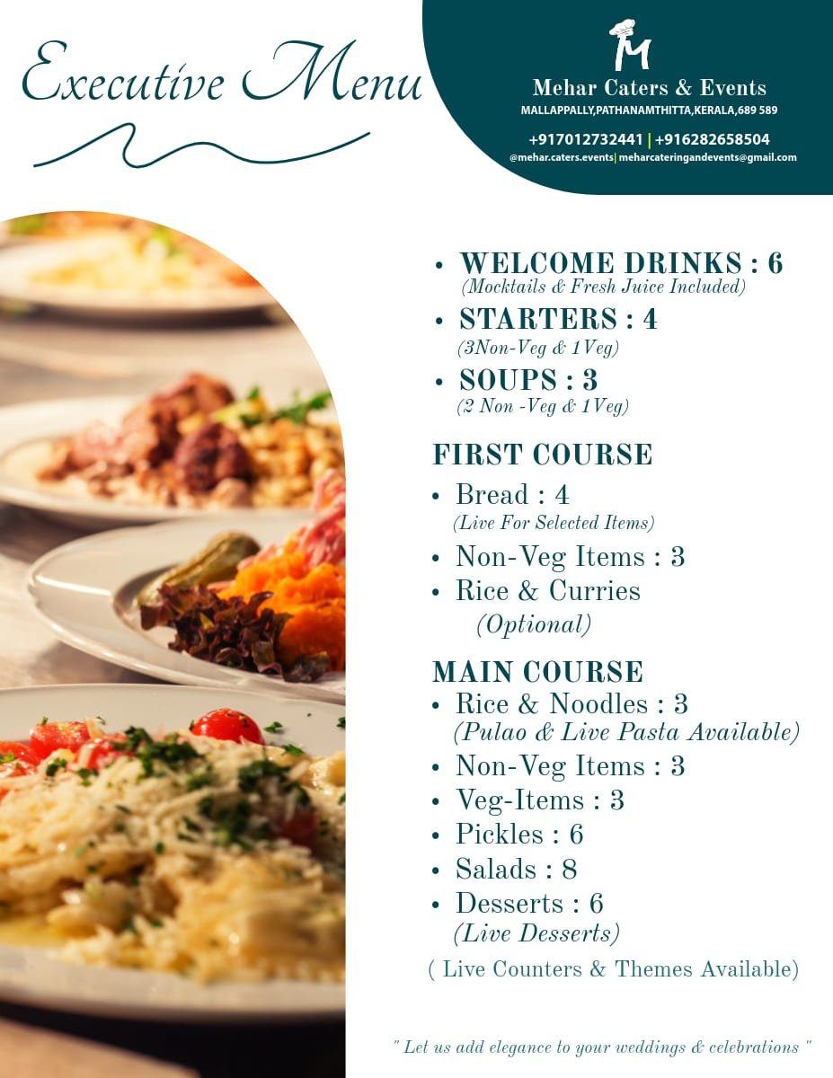 At Mehar Caters And Events, we bring the spirit of Kerala and the richness of multi-cuisine dining to your special day. Whether it’s a wedding, corporate function, house-warming or birthday, we serve up more than food—we deliver an experience.